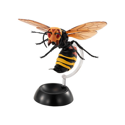 大虎頭蜂為全世界體型最大的胡蜂,GASHAPON 大胡蜂 第二彈轉蛋,與首彈相同,以具有威脅性的 15 公分大尺寸打造,逼真將身體結構真實再現,透過 18 個可動關節與內部活動機構設計,完整重現包含大顎、觸角與虎頭蜂尾部可重複使用的螫針出針機制!透明材質的翅膀細節,展翅時更是達 20 公分寬!