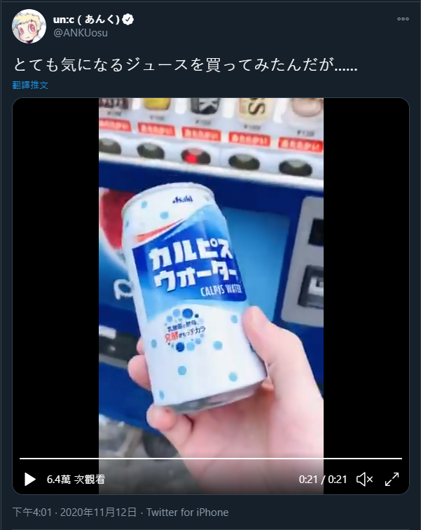 而最近日本知名Nico歌手un:c在推特上就分享了一支相當神秘又詭異的一段影片,在畫面中看似正常無疑的飲料自動販賣機,居然出現了一罐有著人臉的白飲料罐,而且沒有任何的品名,所以也不曉得這罐飲料的來歷到底是什麼。