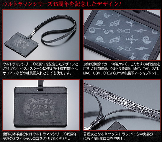 週年紀念真的是商人推出商品最好的藉口,最近假面騎士40週年、超級戰隊35週年,連超人力霸王也來慶祝45週年啦!但是不管打著什麼名號,也是要好商品大家才會買單。現在推薦給大家的是日本超人力霸王45週年推出的證件套,在正面有45週年紀念壓文,內側則是劇中出現的防衛隊、警備隊的經典隊徽,同時在證件套的帶子上,也有標示45週年紀念字樣,十分值得買來蒐藏紀念,而且本商品是每日都會用到的證件套,十分實用,材質也是採用牛皮製成,一點也不馬虎喔(開始替花錢找藉口XD),本商品採預約制,2011/11/13預約截止,12月中商品寄出,有愛的玩具人可以參考一下!