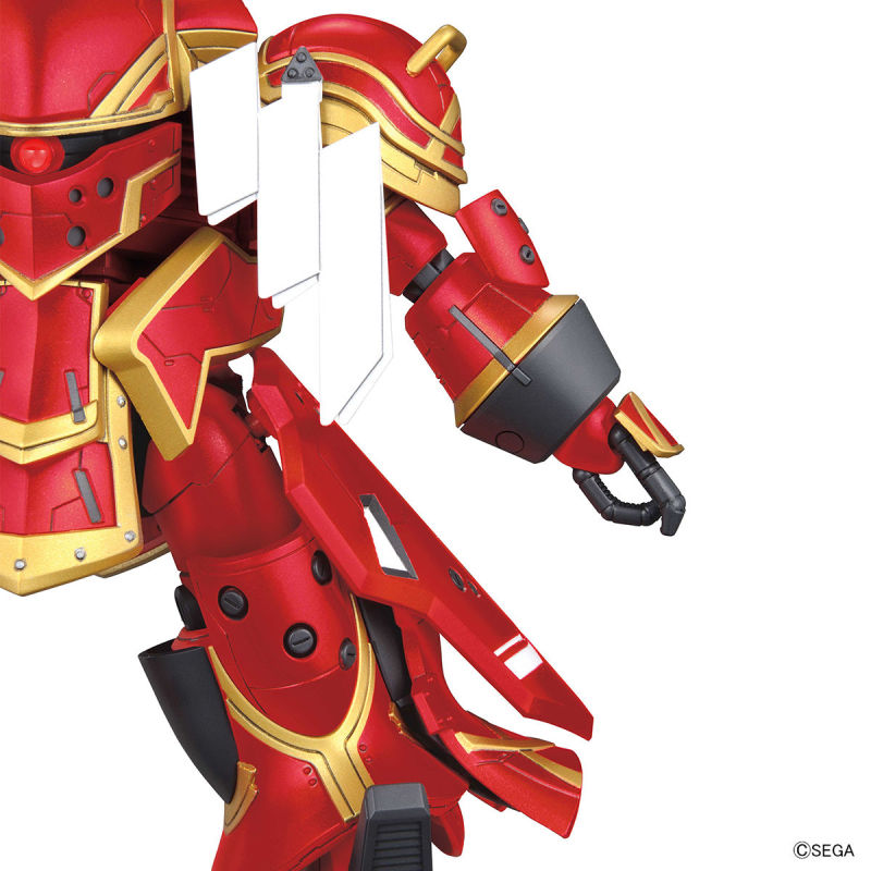 「HG 1/24 靈子戰鬥機・無限(東雲初穗機)」大部分零件沿用過去推出的無限系列機,將成形色替換為朱紅色,以新規零件再現雙肩紙垂、兩側裙甲與大型武裝「神槌」。駕駛艙蓋具備展開機構,駕駛艙內的零件也刻劃精緻細節,可放入東雲初穗人偶再現駕駛狀態。手肘、膝蓋零件搭載伸縮機構,可延長關節提昇可動範圍,搭配神槌把玩出魄力的戰鬥姿態!