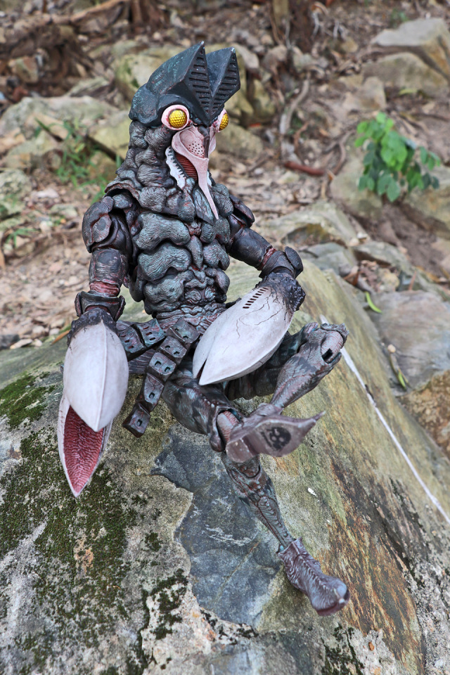 玩具外型上非常不錯,整體外型及比例做得很好。身體每個部分都充滿生化及肌肉感,外甲、肌肉、皮膚等紋理處理亦非常細緻,著色及 QC 方面不俗,惟把玩的時候要額外小心。因為雙腳的設計及比例較小,所以把玩時記得使用台座協助站立,便不會有 "自由落體" 這種情況發生。另外要改善的地方是油漆比較容易掉落,而一些關節位,特別是下盤和大腿的連接位,或一些柱狀連接位如果上色的話就更好,因為擺放一些大動作的時候很容易會 "穿崩"。關節牢固度亦希望可以作出改善,只要安裝巨鉗而手臂不會有不舉的情況的話就合格了!