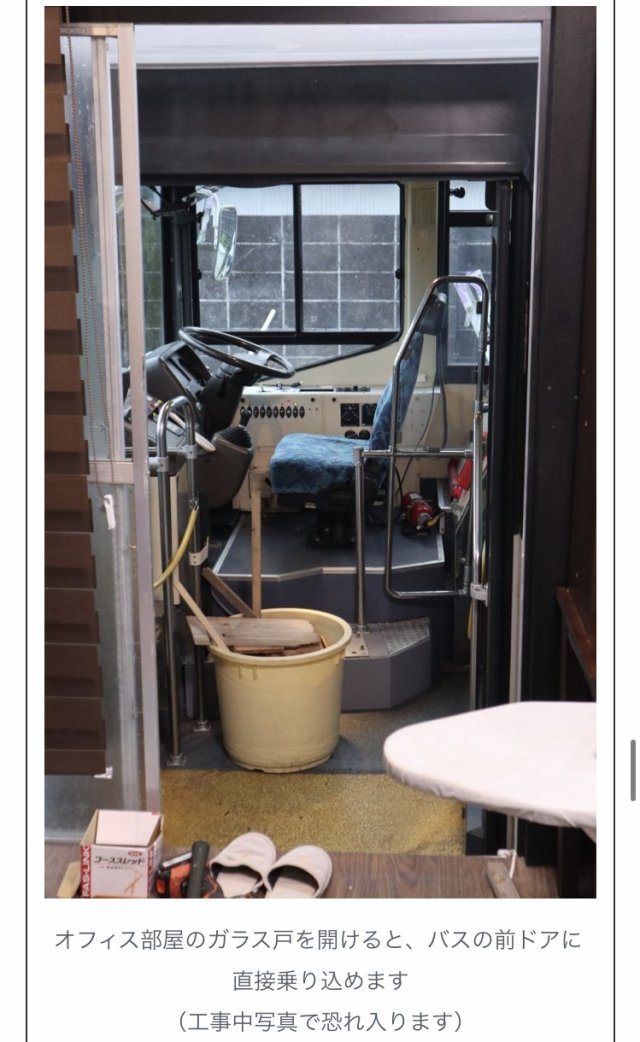 咦?房子的旁邊有台巴士?這是怎麼回事?原來這位房東將自己的房子與巴士作結合 (?) 巴士的門可以與房子的窗戶連結,包含巴士也是出租的物件之一,巴士裡面也可以進行生活瑣事,內部與一般巴士無異,可以自行調整擺設想要的樣子。