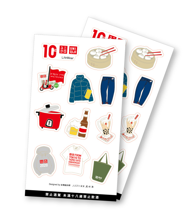單筆消費不限金額且內含童裝一件,即贈UNIQLO台灣10周年紀念貼紙乙張(每日限量100張)。