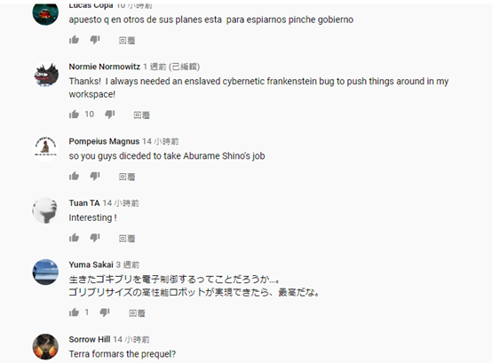 網友笑稱表示「《火星異種》的前傳」,甚至認為這種生化技術將用來軍方使用,最後作為一種監視設備,而日刊電友認為還能使用在哪裡呢?