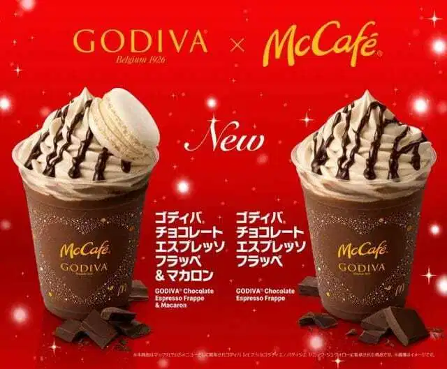 日本麥當勞的咖啡品牌McCafé於今日 11 月 19 日在推特上宣布與享譽全球的比利時皇室御用巧克力品牌GODIVA共同合作。並且將會於麥當勞的McCafé櫃台的專業咖啡師來為各位沖泡「真正的咖啡」,且只會在擁有「McCafé by Barista」專門櫃台的合併店鋪內才有販賣此次的限定商品。