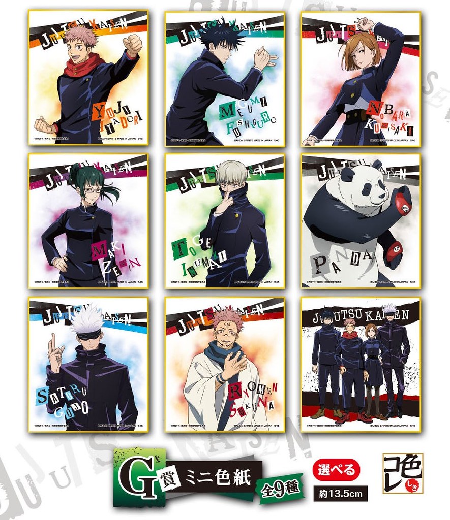 在本次的「一番賞 咒術迴戰」中,分別推出 A賞虎杖悠仁&伏黑 惠 帆布掛報、B賞虎杖悠仁 毛巾、C賞伏黑 惠 毛巾、D賞釘崎野薔薇 毛巾、E賞五條 悟 毛巾、七款角色的 F賞壓克力人型立牌、9種 G賞迷你色紙、10種 H賞角色橡膠吊飾、最後一賞 帆布畫版~最後一賞ver.等賞品,雖然這次賞品沒有推出角色模型,但能讓喜愛這部作品的粉絲們快速收藏到週邊商品~