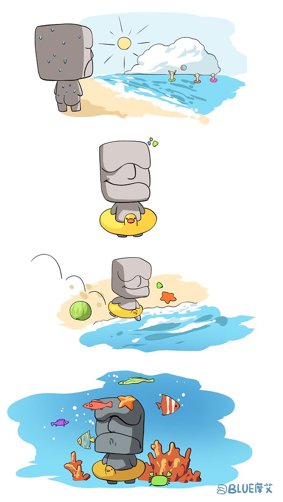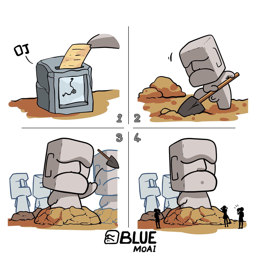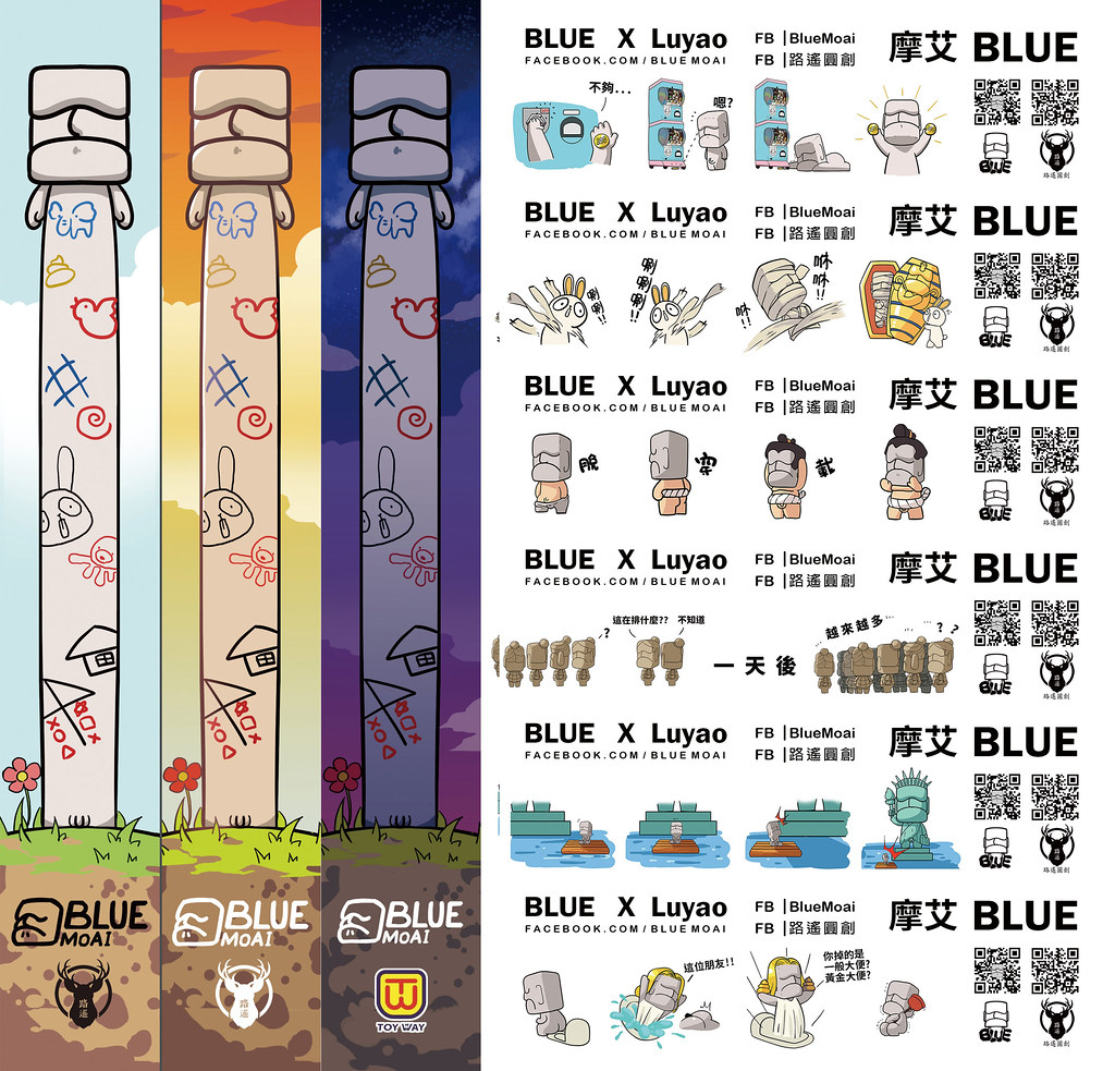 布如文創的原型師 Otter King 與繪師 TIMA 以復活島摩艾石像作為玩具設計元素,用詼諧逗趣的圖文漫畫刻畫出摩艾BLUE的日常生活。