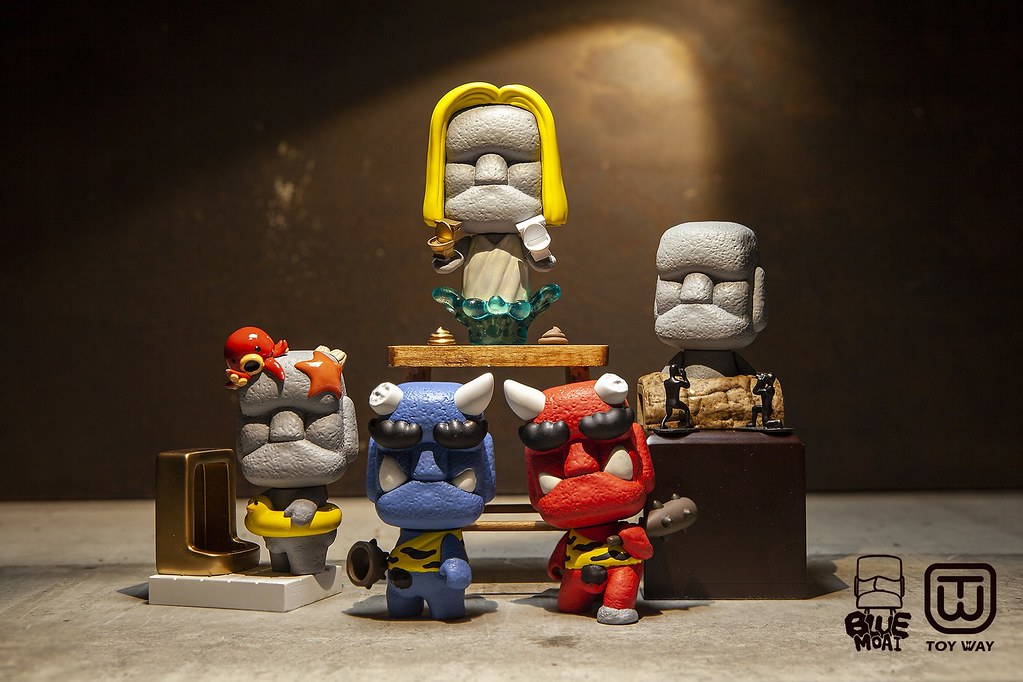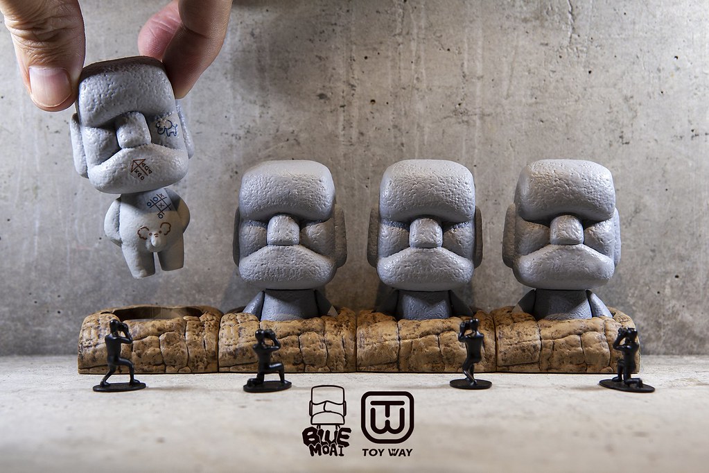 其中,更因為原型師 Otter King 本身罹患憂鬱症,他希望自己能夠將自己所感受到的世界展現出來,便以自身狀況作為設計靈感,打造出孤獨且憂傷的BLUE摩艾。以「玩具是拿來把玩的」作為玩具設計的根本,推出趣味性十足的扭蛋玩具與周邊商品,BLUE摩艾系列也因此誕生。
