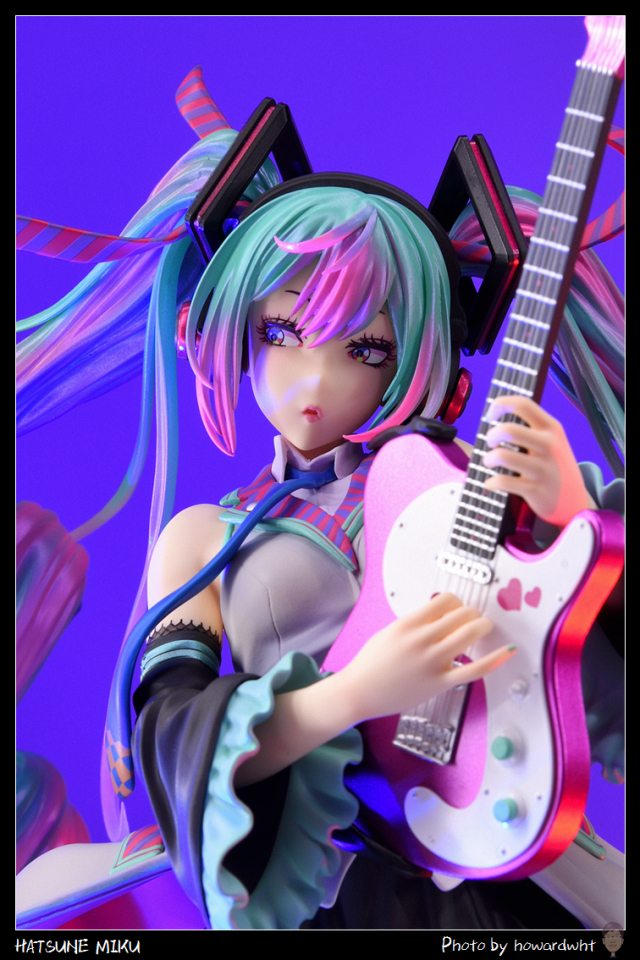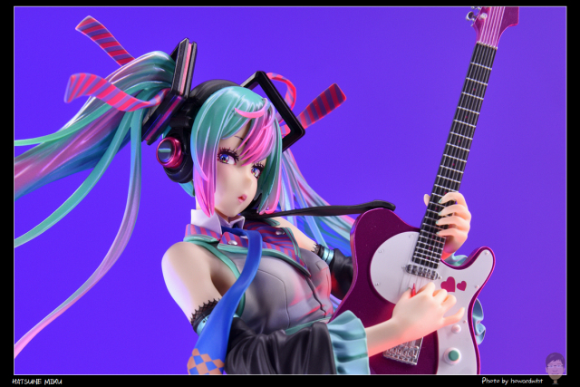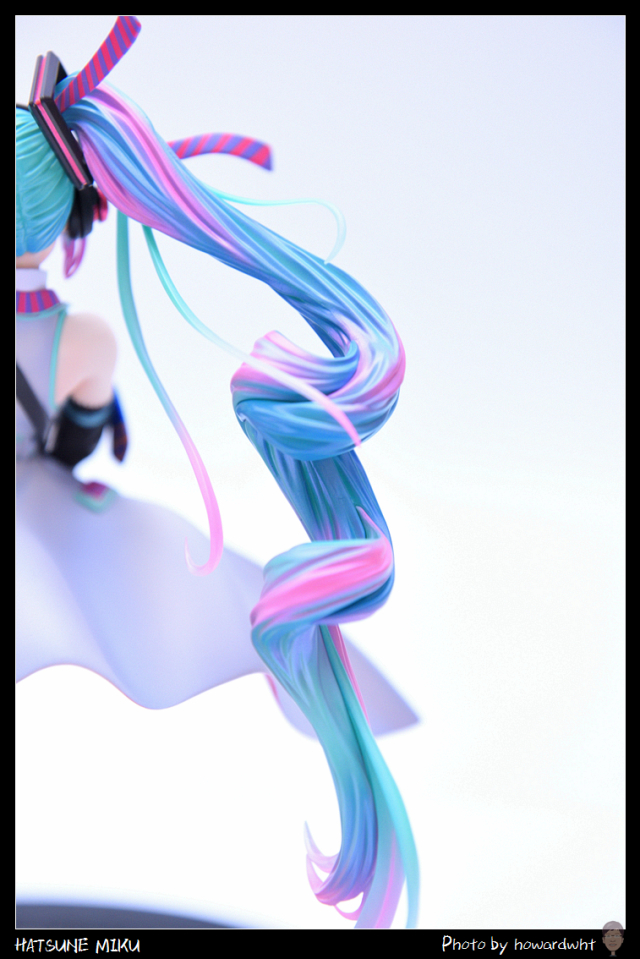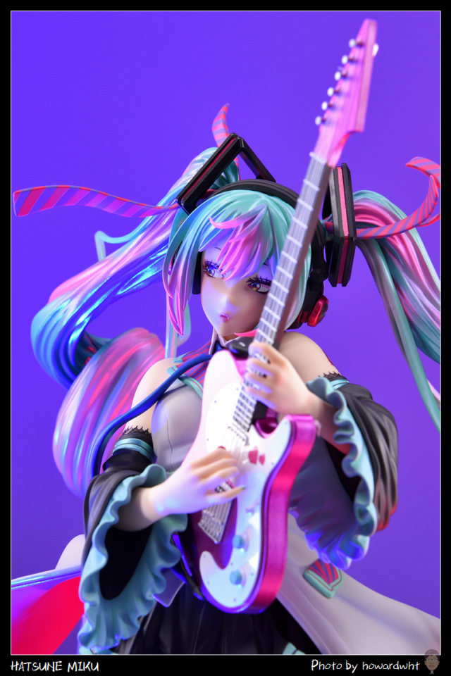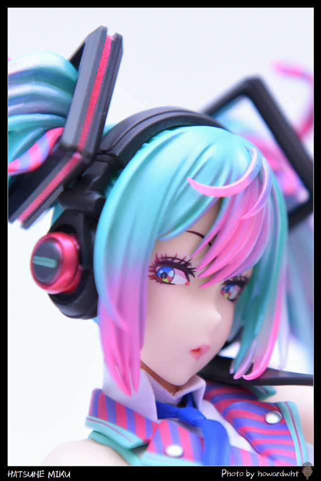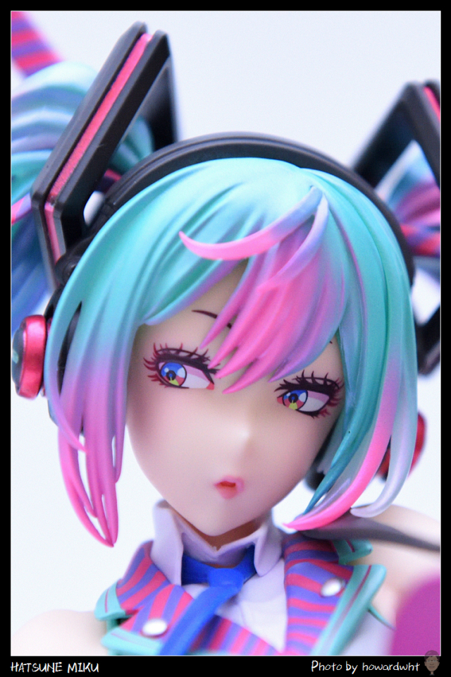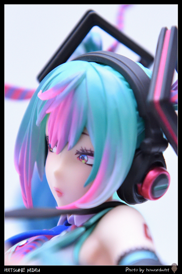 綠色與紛紅色相間的髮色設計很特別,有別以往多數是單髮色的初音
