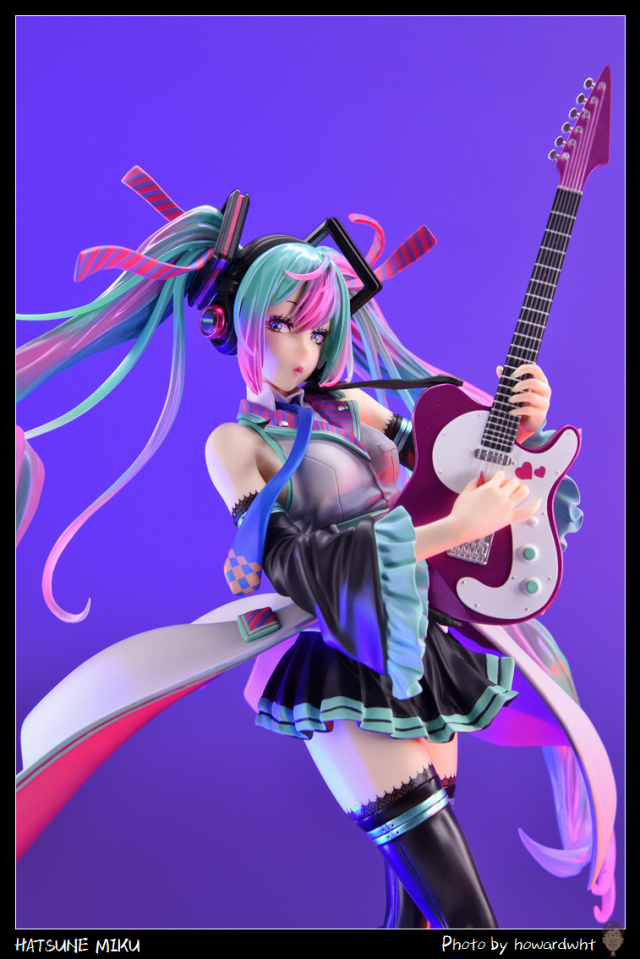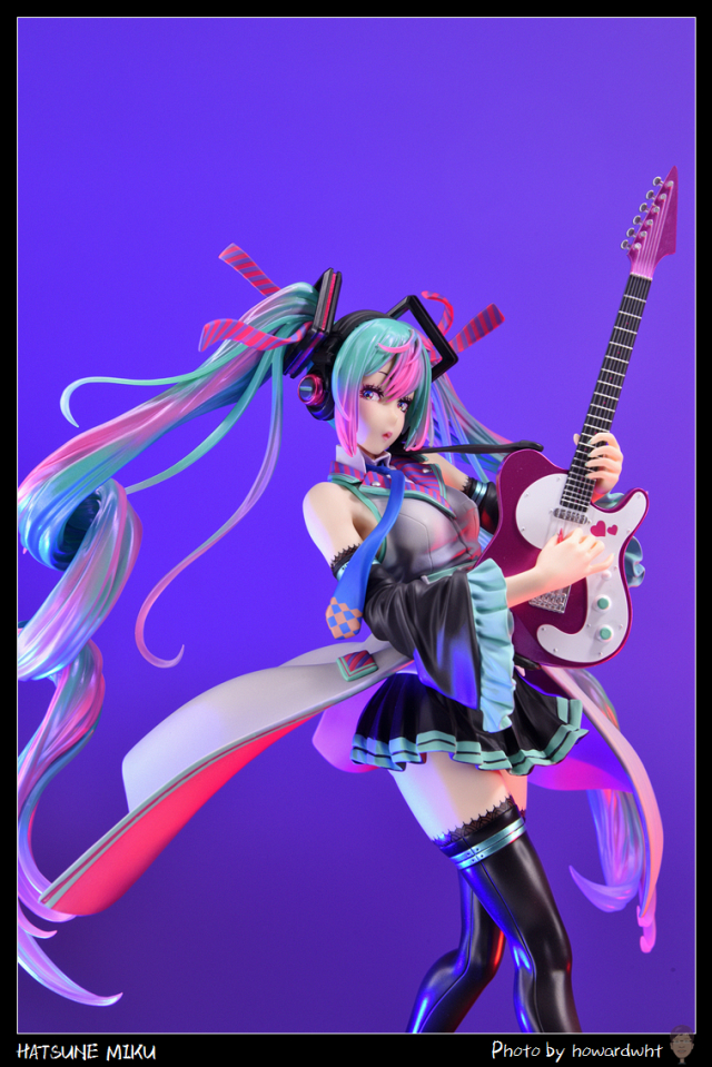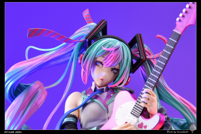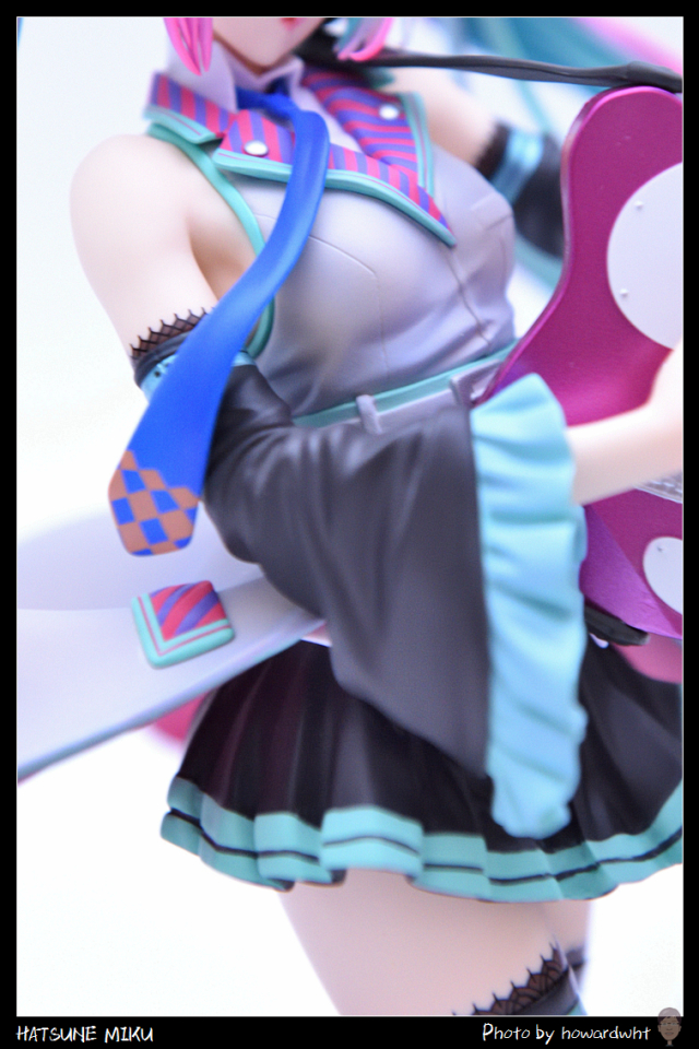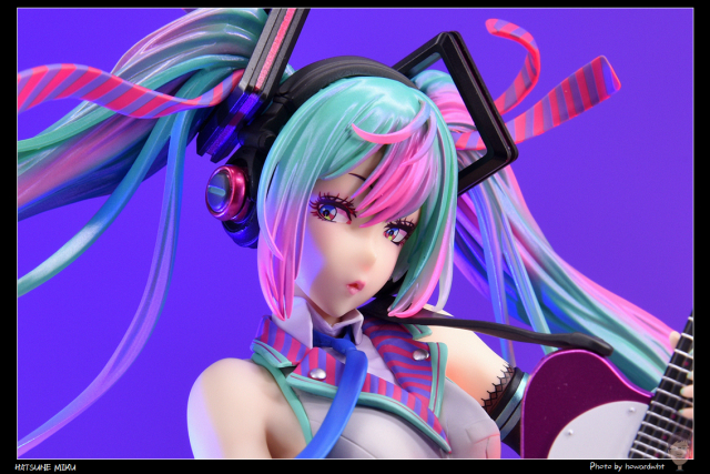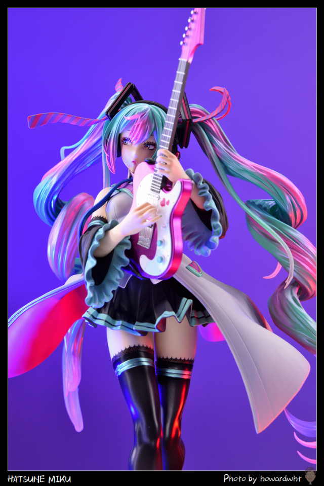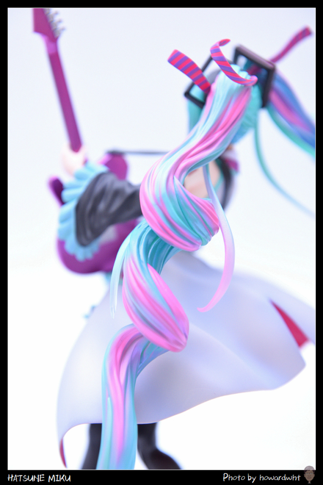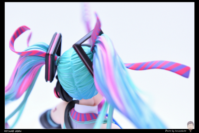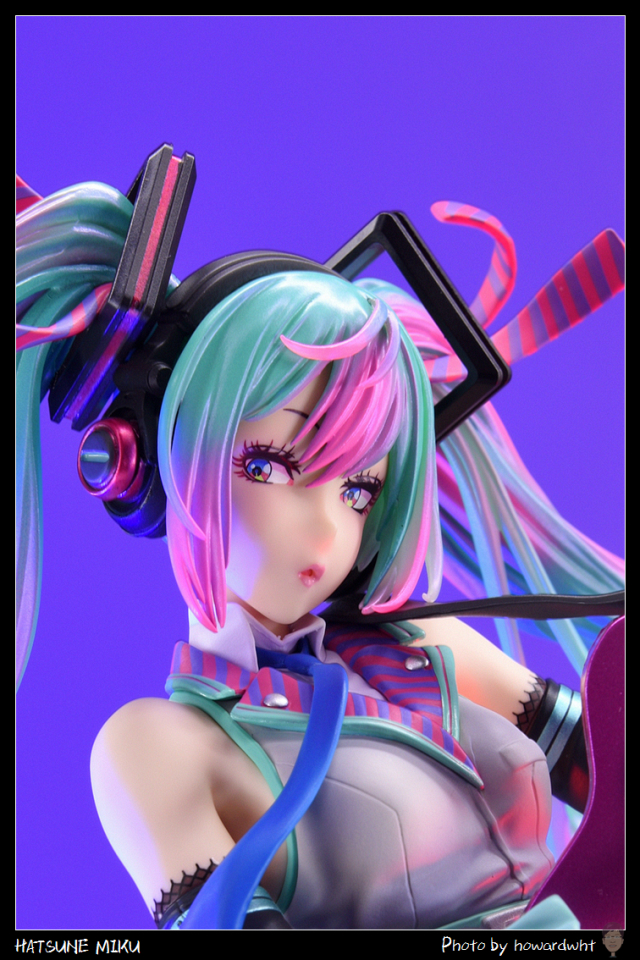 綠色與紛紅色相間的髮色設計很特別,有別以往多數是單髮色的初音