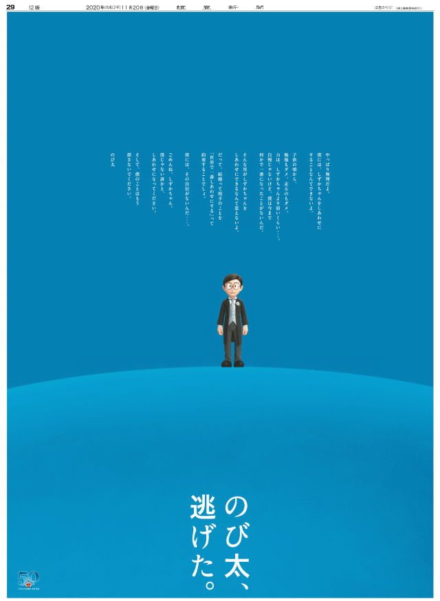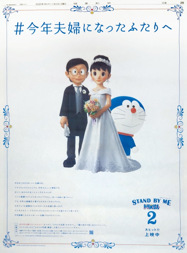 正巧的是,這一天又剛好是3D動畫電影《STAND BY ME哆啦A夢2》上映的第二天,為此日本讀賣新聞再度為該電影登上報紙版面,當然目的也是為了因應節日而特別推出的限定慶祝活動。