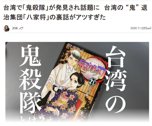 也因此,在網路上更能時時刻刻看到一些有關於《鬼滅之刃》的有趣迷因或二創作品,其中由FB粉絲專頁「台灣迷因 taiwan meme」所製作的「日本鬼殺隊」跟「台灣八家將」的諷刺梗圖,居然意外地登上日本媒體報導,成為日本當地民眾的關注焦點!?