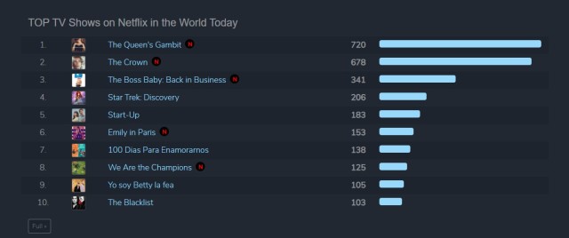 至於目前全球Netflix熱門影集排行前十名當中,《后翼棄兵》位居第一,而今年11月剛播映的《王冠》(The Crown) 第四季則緊接在後,這也無疑是2020年最值得全球肯定的兩部電視劇。