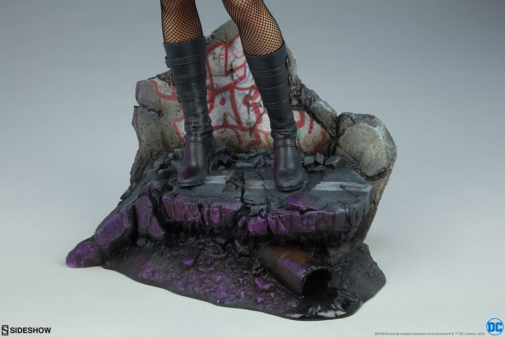 本作高約 54 公分,打造出身處於暗巷的黑金絲雀、正戴上黑色手套準備打鬥的樣貌,細膩地刻畫出金髮飛舞的動感、短夾克的皺摺,黑色連身皮衣的亮面塗裝也十分出色,網襪的部分則是採用真實布料製作,胸、臀、腿部的線條相當迷人,結實的雙腿也展現出黑金絲雀擅長近身肉搏的角色設定,地台除了做出紫光照射的上色處理之外,還印製了由黑面具領導的幫派-假臉協會(False Face Society)的塗鴉,傳達其世界觀。