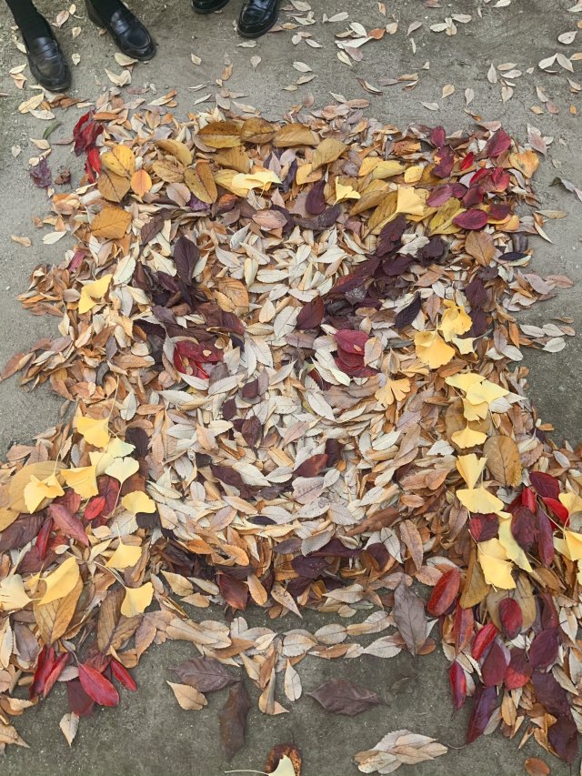 推主認為楓葉的顏色與西施惠本身的設計很搭配,決定透過各種不同顏色的楓葉來做成這幅作品。