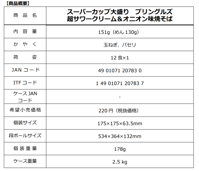「品客超巨大杯 超酸奶油&洋蔥口味炒泡麵」結合了品客洋芋片經典的「酸奶油&洋蔥」口味,調配成適合速食炒泡麵的醬料,具有洋蔥和大蒜的奶油香氣。透過均衡混合酸奶油,打造超酸的口感,可以忠實重現洋芋片熟悉的味道。搭配 Acecook 自家的速食麵條,打造出全新的口感。結合歐美與日本的風味搭配,想必是很有挑戰性的 XD。
