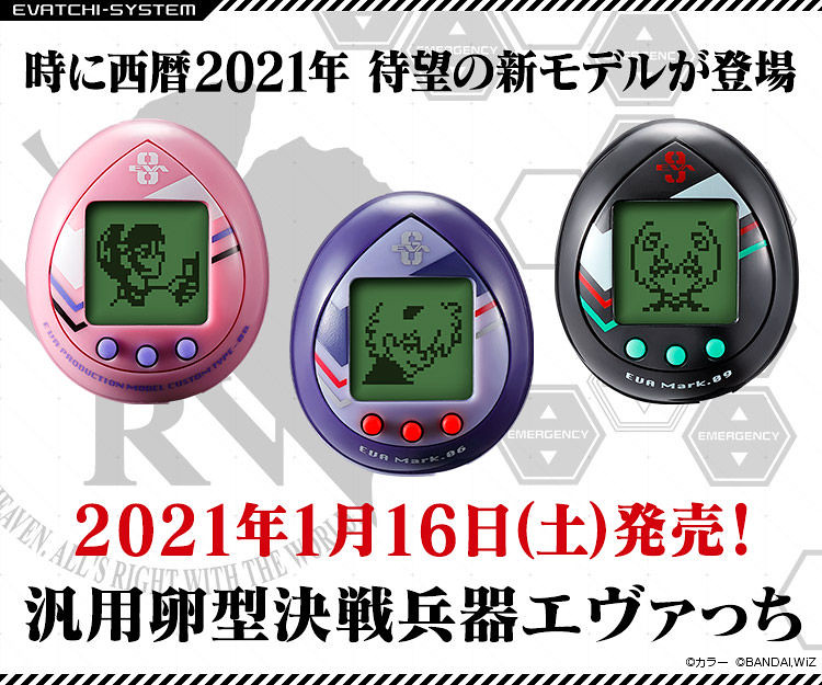 日本萬代玩具公司旗下人氣的掌上型電子寵物遊戲機「塔麻可吉」將與《新世紀福音戰士》合作推出第一彈極機密商品:「汎用蛋型決戰兵器 EVACCHI 」後,這次在推出第二彈「綾波零(暫稱)」、「真希波」、「渚薰」三種款式,每款參考售價為 2,530 日圓,預計將於 2021 年 1 月發售。