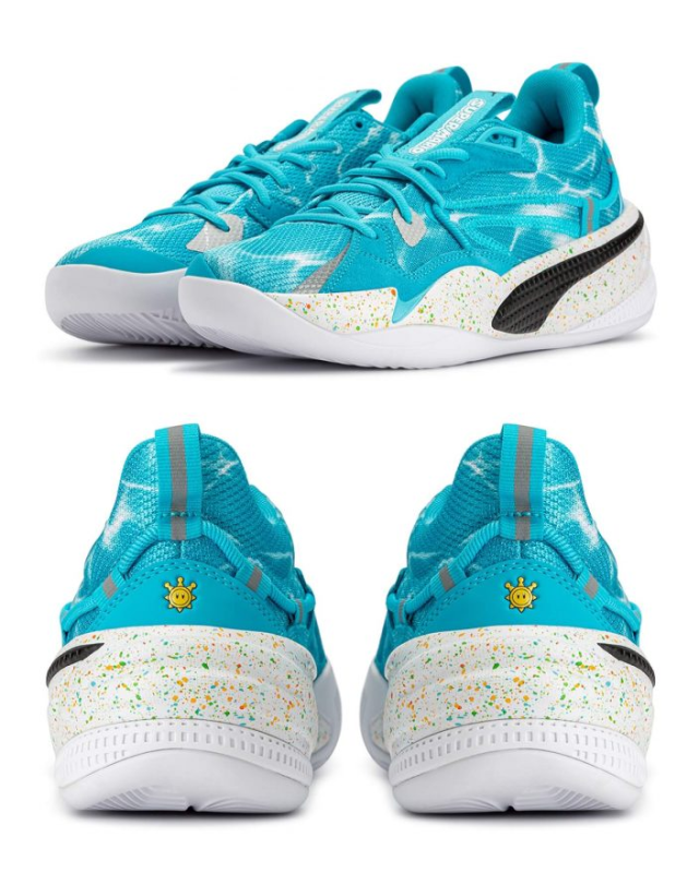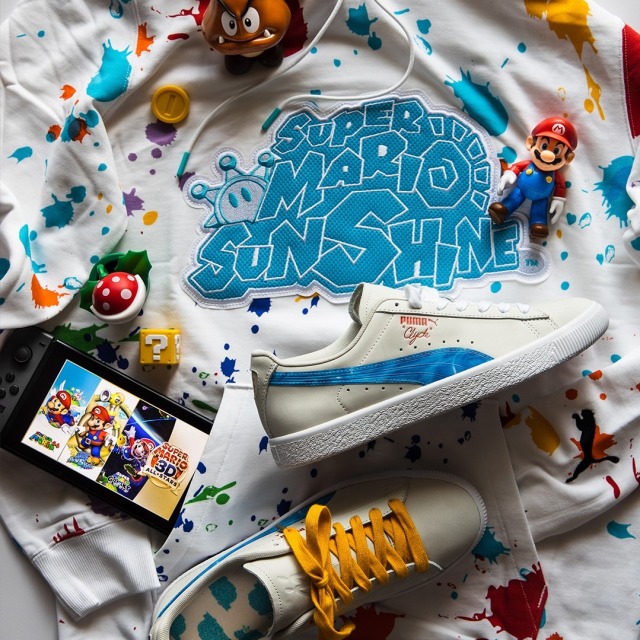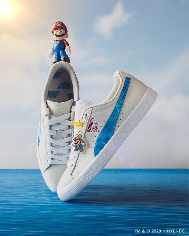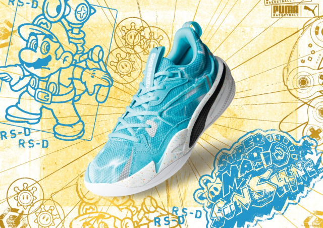 ▼PUMA Clyde Super Mario Sunshine 、 PUMA RS-Dreamer Super Mario Sunshine 設計靈感則源自瑪利歐在熱帶德爾菲諾島的冒險,採用遊戲中的水元素為設計細節
