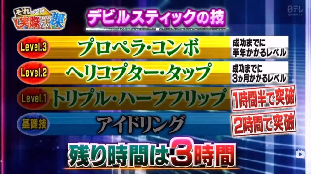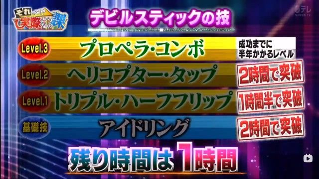 經過時間Doremi的魔法效果加成後,在度過了一個小時半後,森川葵終於第一道關卡「180度空轉來回三輪」修練成功!最後她只剩下三個小時的時間來達成所有的挑戰了。