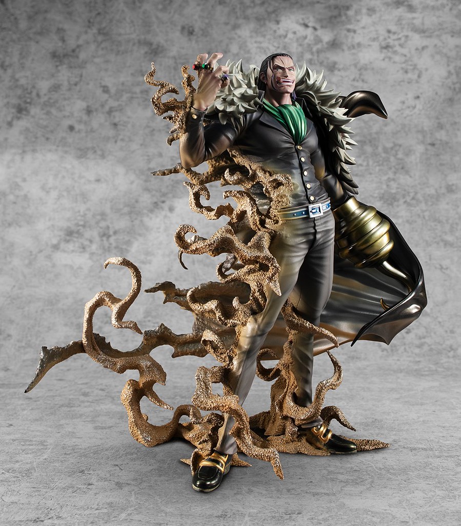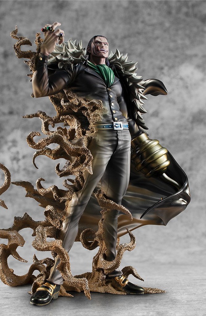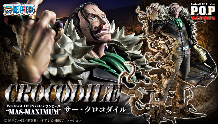 P.O.P “MAS-MAXIMUM” 克洛克達爾,由大名鼎鼎的原型師 MAS 操刀,打造出透過沙礫果實能力,身體一部分砂化變成沙子狀態的克洛克達爾立體化,並由造型師安藤賢司上色,精緻還原120%的超霸氣姿態。除了嘴上咬著雪茄的無畏狂氣表情與臉部傷疤、向後梳的頭髮等特徵真實再現,手上的巨大金色鋼勾與戒指、鈕扣和皮帶、鞋子等細節皆施以質感的金屬色;飄逸的外套、服裝的緊繃的皺褶展現出強壯的肌肉,在額頭與手部更是有細緻的血管線條!