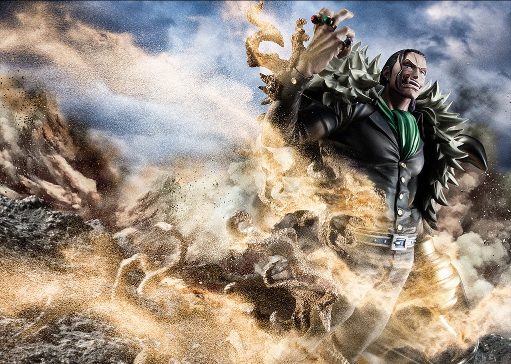 《航海王》中的人氣角色克洛克達爾,曾經是王下七武海之一、犯罪組織「巴洛克華克」的社長(代號為 Mr.0),是自然系「沙沙果實」能力者,能化身沙礫人,把身體變成沙並操縱沙,因而有沙漠之王(砂漠の王)的霸氣稱號。在阿拉巴斯坦篇裡以壓倒性的強悍實力多次擊敗魯夫,從奪取阿拉巴斯坦王國與古代兵器的縝密行動中也能看出克洛克達爾所具備的謀略與殘忍性格。