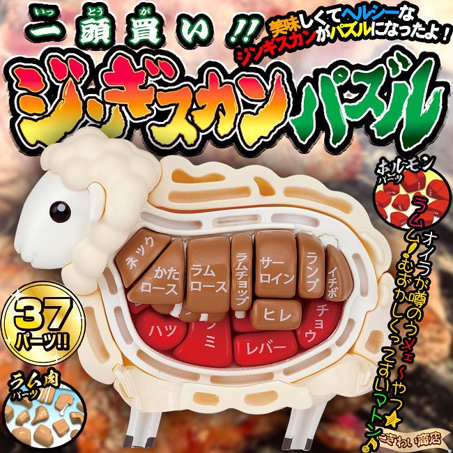 日本 Megahouse 玩具公司旗下令人食慾大爆發的解體拼圖系列在推出特選燒肉拼圖、黑鮪魚、黑豬、松葉蟹、烤雞、虎河豚解體拼圖等作品與小尺寸「GASHAPON 鮪魚解體拼圖」轉蛋之後,再度發表新的拼圖玩具「買一整頭!成吉思汗羊肉 立體拼圖」(一頭買い!!ジンギスカンパズル)讓人口水直流卻又默默懷有一絲歉疚感,衝突登場啦!參考售價為 1,580 日元,於 2020 年 11 月下旬發售。