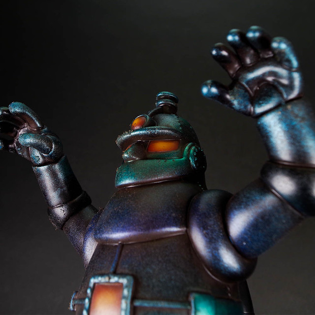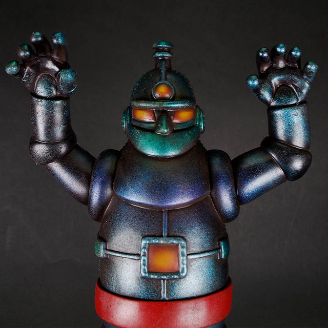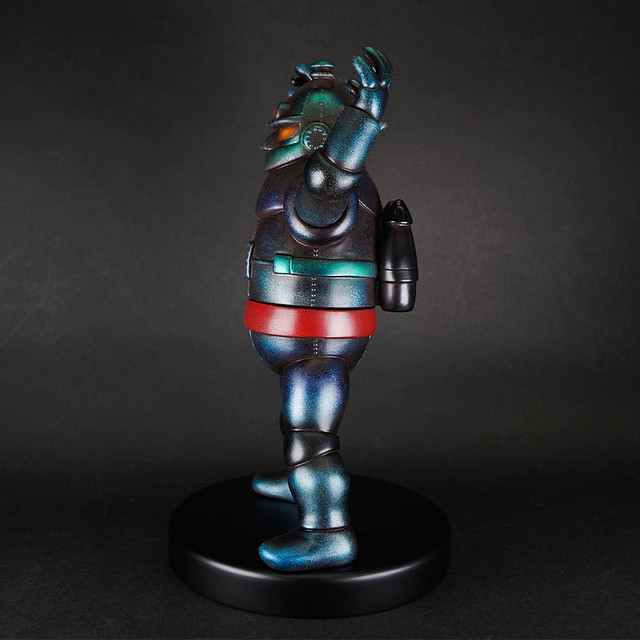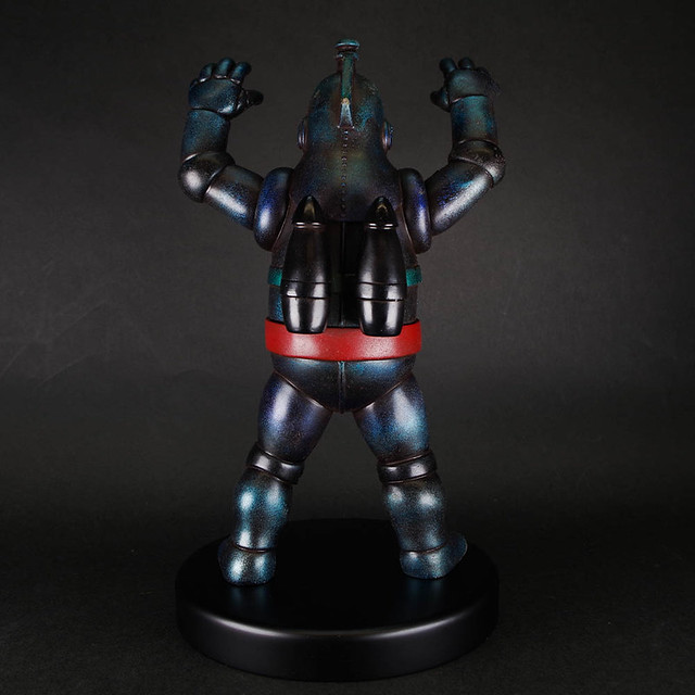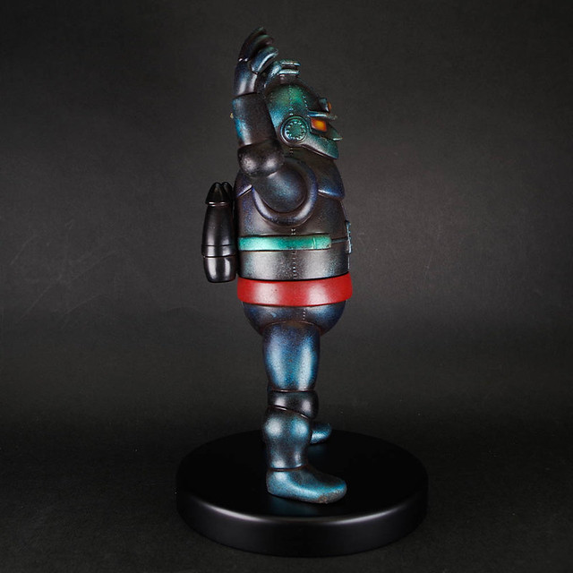 這款由「シカルナ工房」所製作推出的限定版鐵人28號之軟膠玩具,採用的是與一般常見的鐵人28號顏色所不同的色澤感,導入金屬的鐵製品感,讓整體的感覺煥然一新,彷若一架有著斑駁金屬鏽感的老舊機器人,其重量感似乎也上升,整體的造型也頗有復古味。
