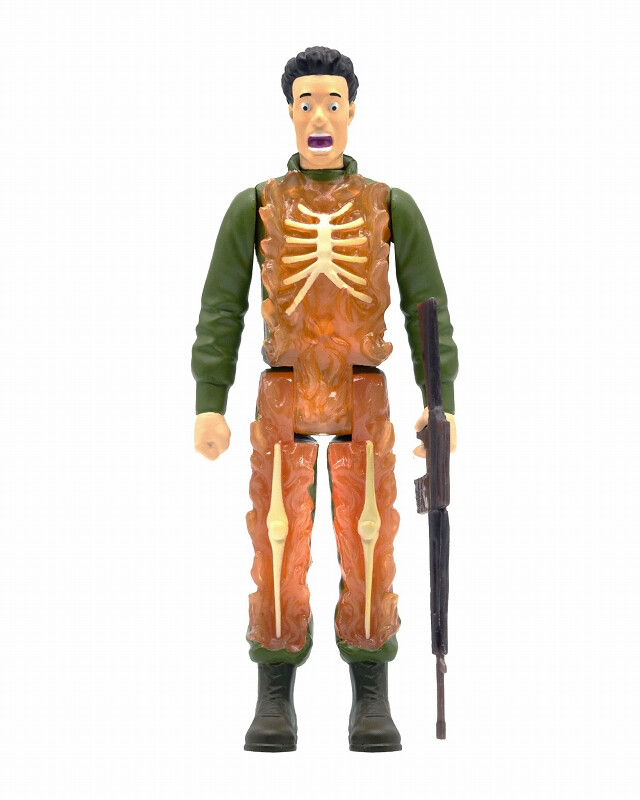 本次的《星戰毀滅者》ReAction 吊卡共有三款角色:Invasion Begins、Destroying a Dog、Burning Flesh,除了以 ReAction Figures 系列風格重新詮釋外星人的造型、裝備細節之外,威力超強的雷射槍也一並附上,還有一隻被射中的狗狗配件!還有一個是被雷射槍擊中、正在血肉模糊中的軍人,加上與玩具本體相對應的背卡視覺,超級值得收藏啊!