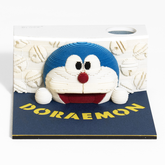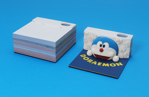 為同慶國民級長壽動漫《哆啦A夢》發行50 週年 ,推出「Omoshiroi Block哆啦A夢紙雕便條紙」,原為尺寸為寬85 x 深82 x 厚43mm,總共有 150 張,隨著便條紙愈撕愈多,哆啦A夢可愛的招牌大頭與萌萌大眼就會慢慢露出來~