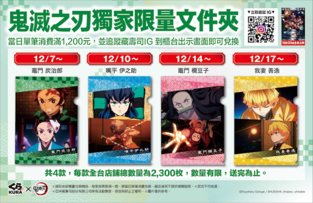 日本連鎖迴轉壽司店鋪《藏壽司》(くら寿司)先前在日本推出讓平日營業額創新高的超人氣《鬼滅之刃》合作活動,在劇場版 《鬼滅之刃 無限列車編》成為臺灣影史日本電影票房冠軍之後,讓粉絲敲碗許久的聯名活動也終於將在台灣藏壽司展開啦!