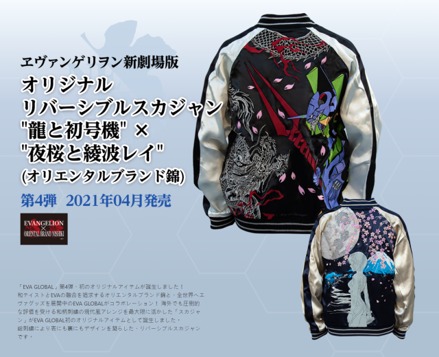 【EVA GLOBAL】オリジナル リバーシブルスカジャン龍と初号機 ×夜桜と綾波レイ柄(オリエンタルブランド錦)