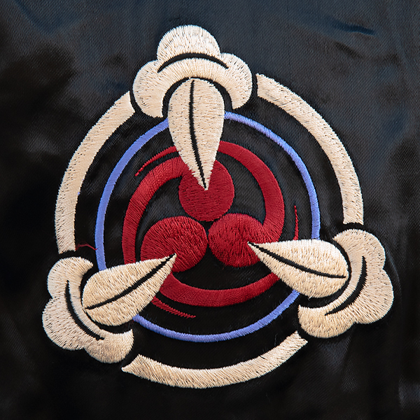 此款採雙面穿的橫須賀外套版型,緞面的材質及大面積的職人工藝刺繡配上和風的圖案設計,打造出滿滿日本氣息的風格,宛如藝術品的刺繡讓人目不轉睛。