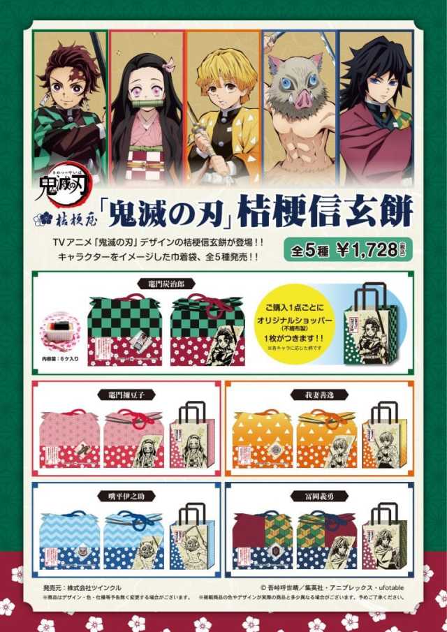 山梨縣的特產,日本老字號和菓子屋「桔梗屋」的招牌-桔梗信玄餅,將與人氣動漫作品《鬼滅之刃》合作推出聯名包裝樣式,不但有合作特殊仕樣的包裝,展現出各個人物的特色,售價為 1,728 日圓。