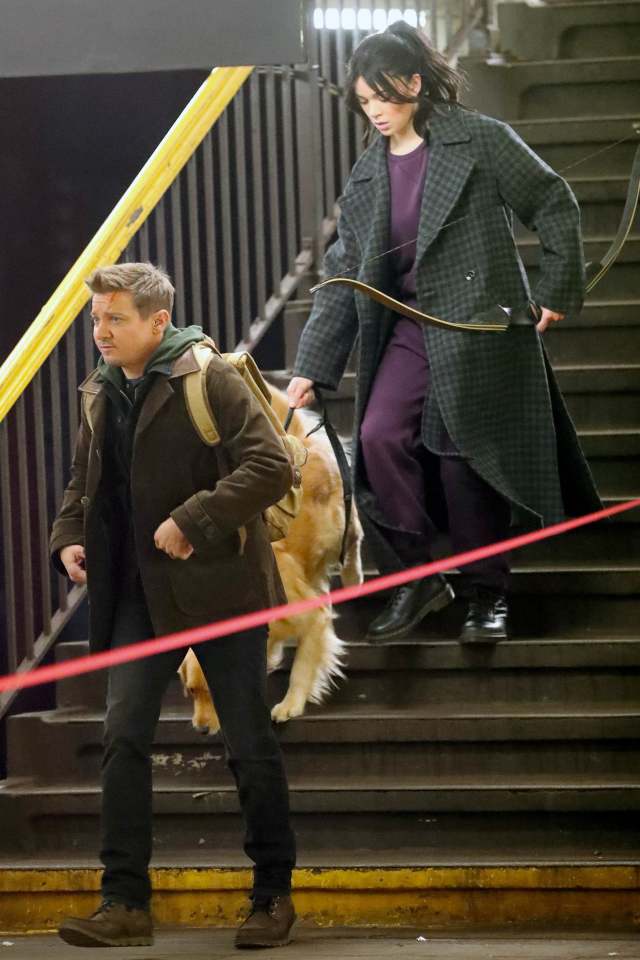 根據消息指出,在這幾張的片場照中可以清楚看見扮演「鷹眼」克林特巴頓的傑瑞米雷納(Jeremy Renner)與一手拿著弓、一手牽著披薩狗幸運(Lucky the Pizza Dog)的「二代鷹眼」走在一起,且我們可以很清楚看出,扮演凱特畢夏普的人,正是23歲美國女星海莉史坦菲德(Hailee Steinfeld)。