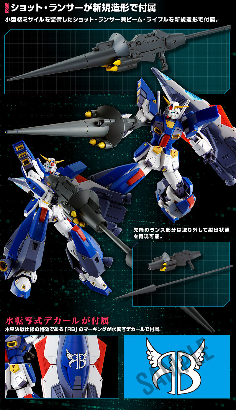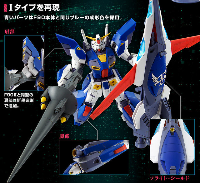 「MG 1/100 鋼彈F90用 I型任務背包(木星決戰規格)」套件中不包含「MG 1/100 鋼彈F90」本體, I 型任務背包的肩部、腿部推力強化組件、飛行盾牌等皆沿用「鋼彈F90II I型任務背包」零件,並將藍色成形色更改對應 F90 色調,而搭載 5 枚小型核彈的射擊型長槍也以新規零件製作。飛行盾牌上特徵的「RB」標誌也收錄在這次的水貼紙中。