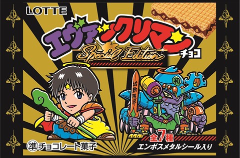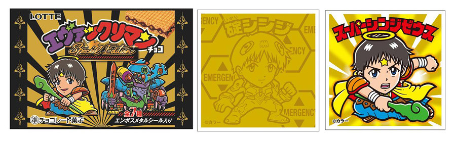 日本樂天 LOTTE 零食品牌所推出的經典「聖魔大戰」(ビックリマン/Bikkuriman)巧克力餅乾,在今年的「聖魔大戰之日」驚奇企劃中發布過與《福音戰士新劇場版》聯名的相關消息,繼「EVA聖魔大戰珍藏貼紙」與海洋堂特製「超級宙斯真嗣 & EVA耶穌大力士初號機」人偶抽獎活動後