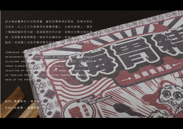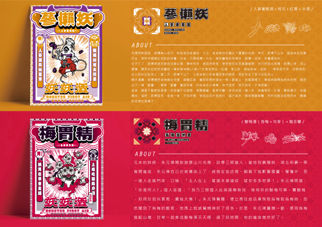 提到酒你會想到怎麼?是豪邁的乾杯文化,還是借酒消愁的陋習?我們以「妖妖酒」為主題,將藥材典故透過設計與藥酒保健結合,已認識傳統藥材的美好歷程與正確飲酒觀念的建立。