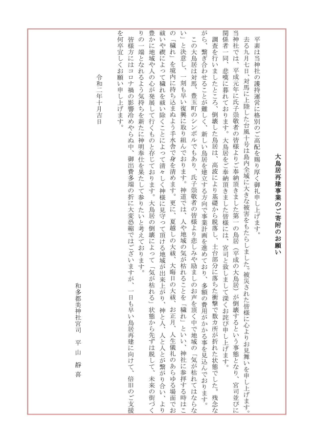 《對馬戰鬼》原址日本長崎縣對馬島的多都美神社鳥居遭到颱風侵襲而損壞,為了修復展開網路募資,僅一天就達標目標金額500萬!
