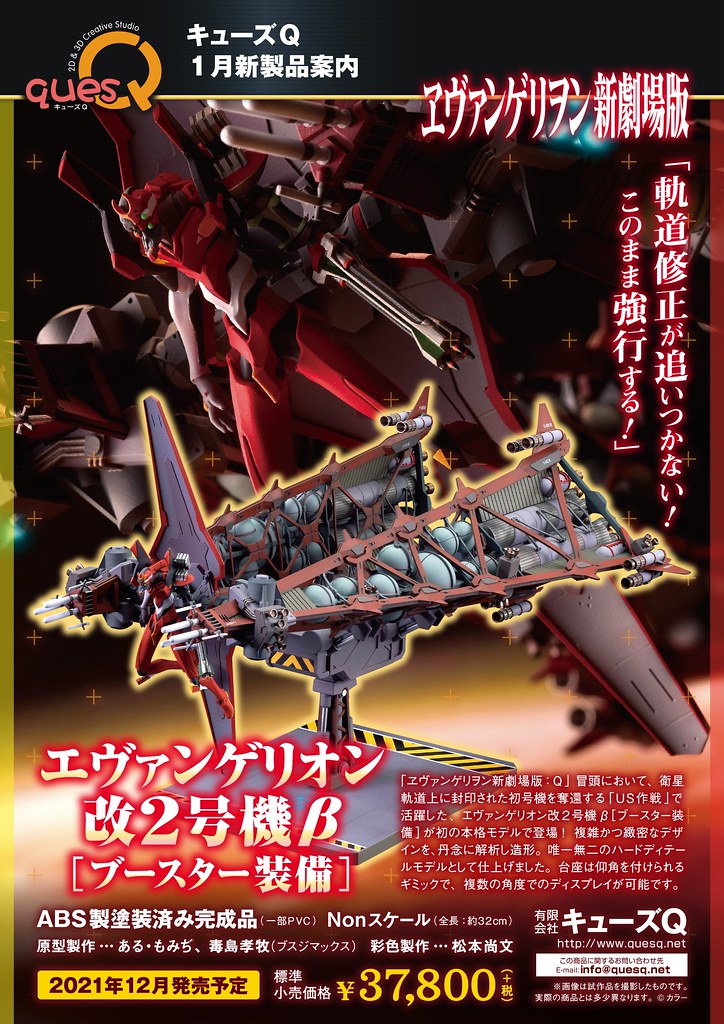 日本模型商 quesQ(キューズQ)於昨(06)舉行的『WONDER FESTIVAL 2020[Evangelion]』展中正式公開出自《福音戰士新劇場版》的最新商品「EVANGELION 改2號機β[推進器裝備]」試作品,預計 2021 年 12 月發售。