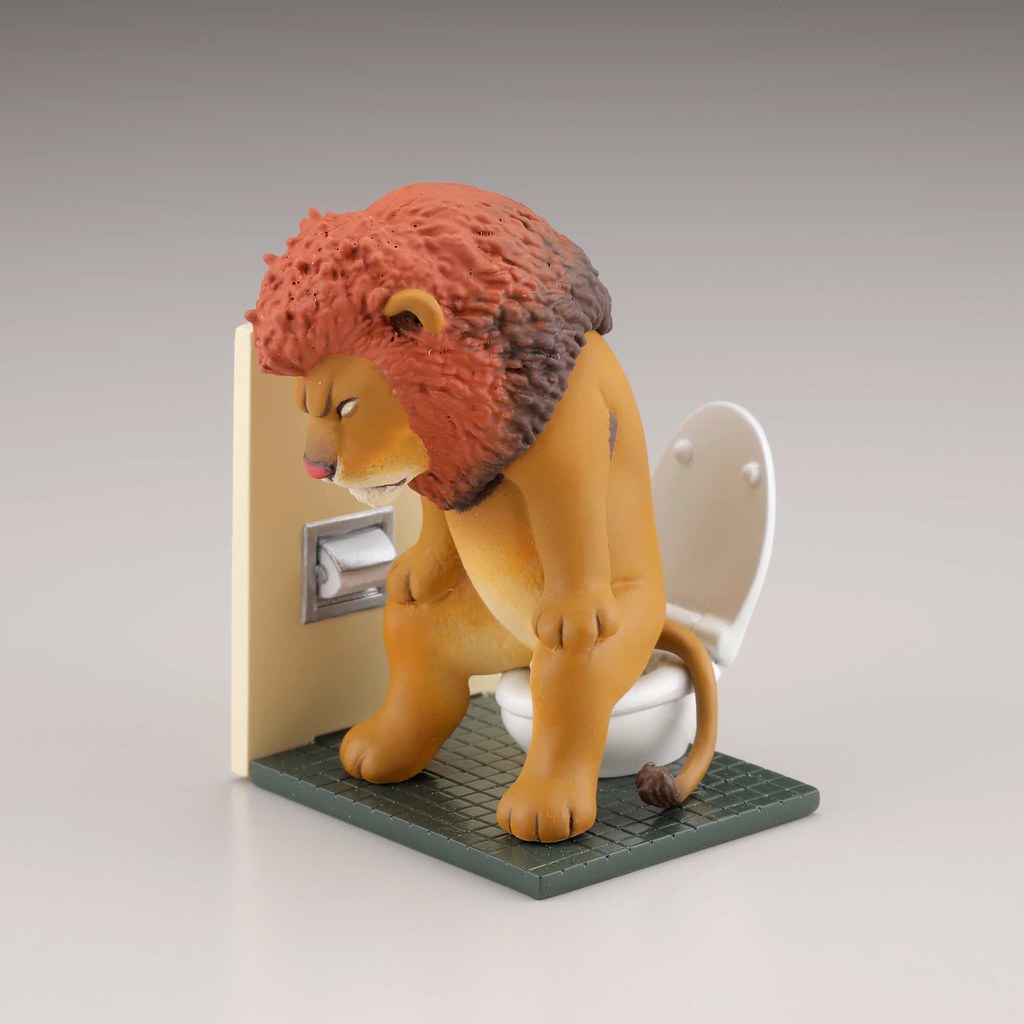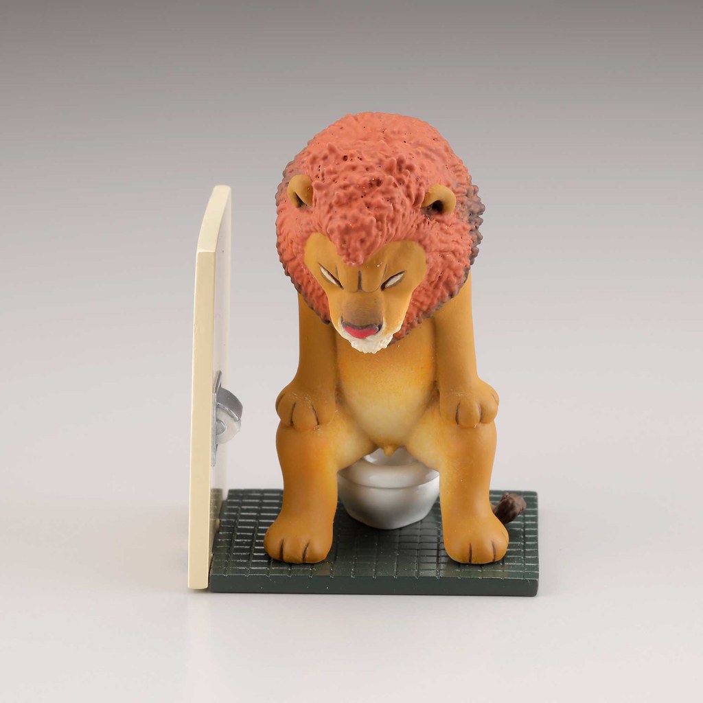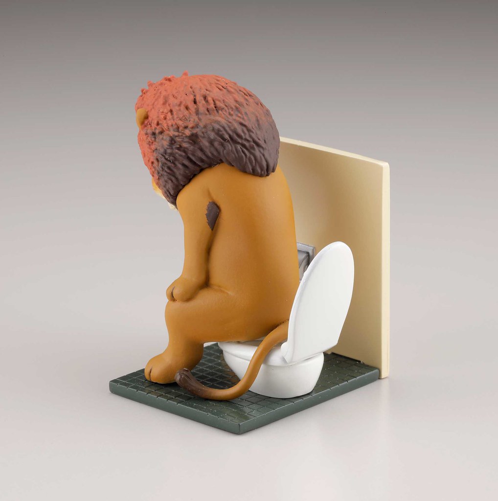 擅長在動物們身上表現出多樣的豐富情感,以可愛、溫暖的風格將動物擬人化的藝術巨匠「佐藤邦雄」,本次海洋堂再次將大師筆下正在上廁所的動物們給立體化,在 3~5 公分的尺寸裡,表現出正「恩恩」的河馬、獅子、兔子、變色龍,不同於兩款前作(第一彈、第二彈),這次把便器從小便斗改成西式馬桶~還附上了一面安裝有捲筒衛生紙的隔板(雖然根本遮不住河馬與獅子),看到獅子那款,就想到花了大把時間卻無功而返的那段便秘時光呀:D~!!