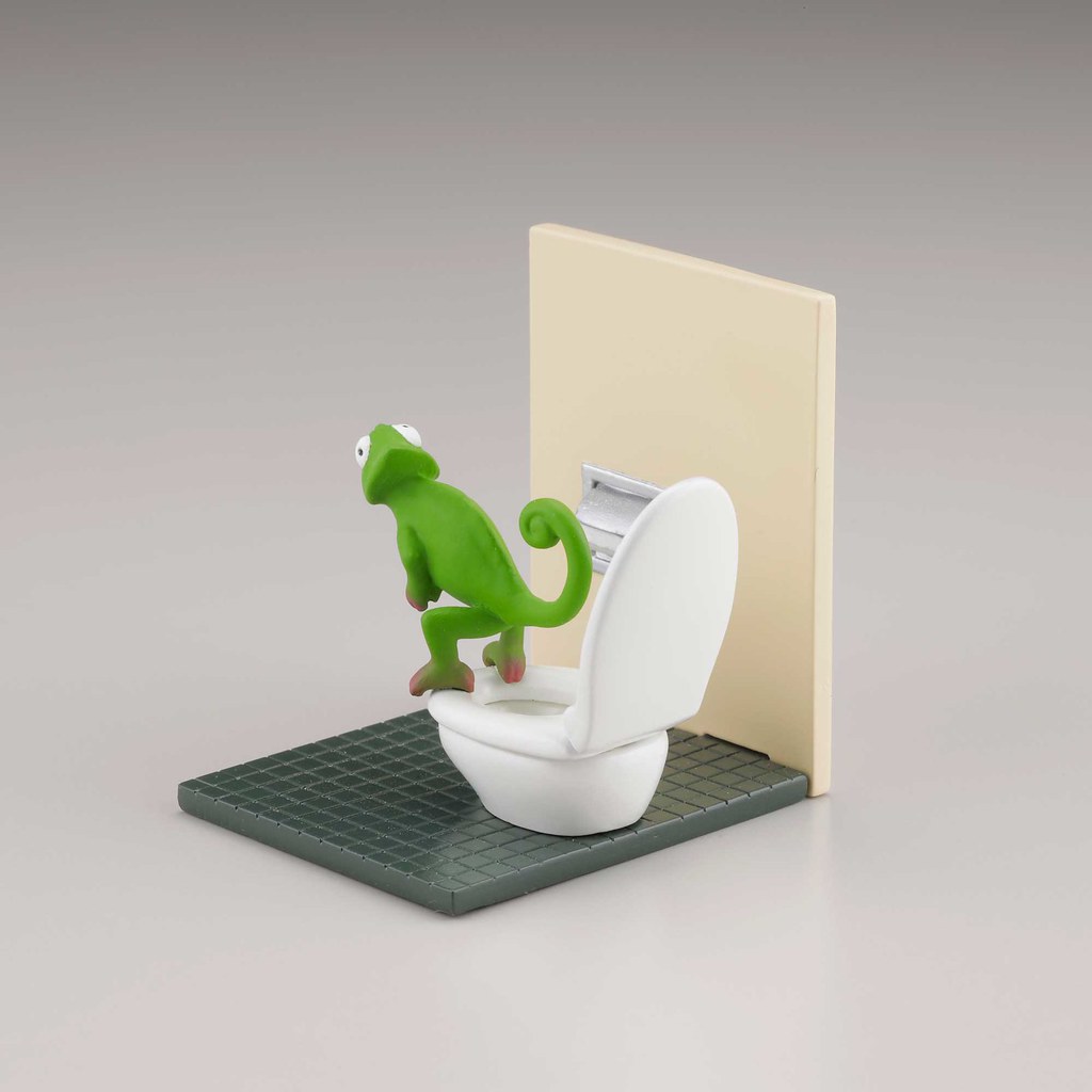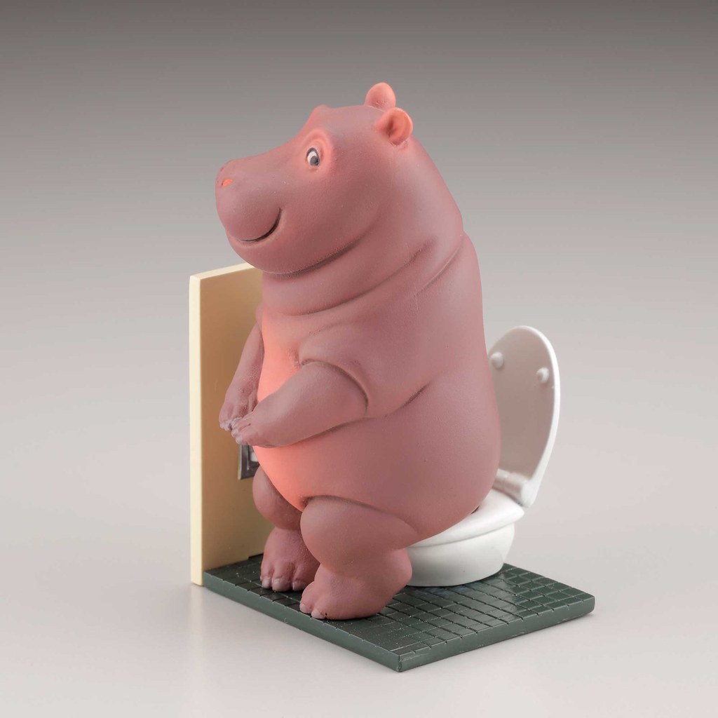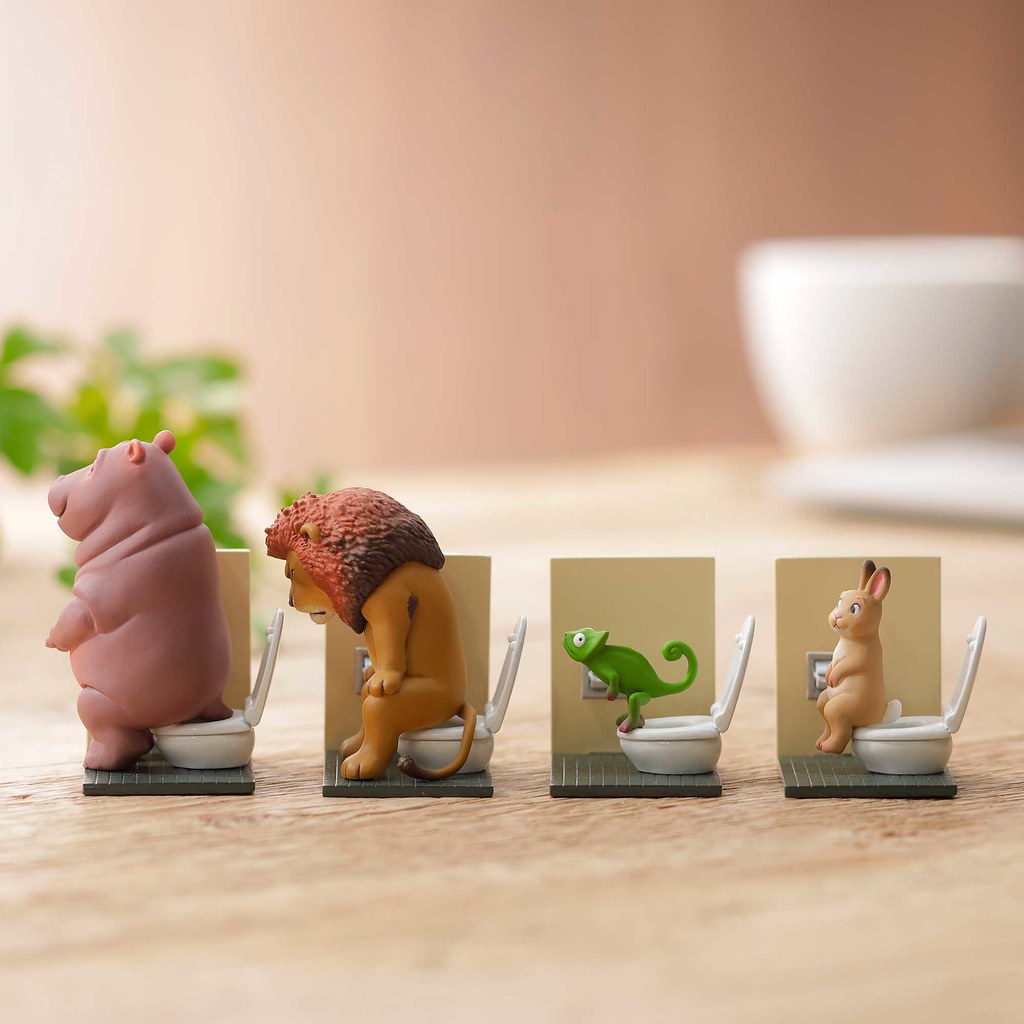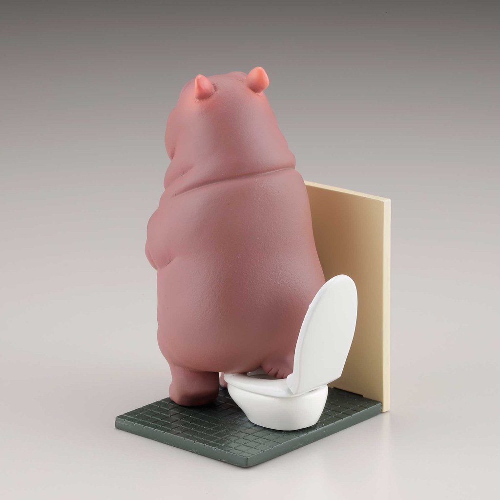 擅長在動物們身上表現出多樣的豐富情感,以可愛、溫暖的風格將動物擬人化的藝術巨匠「佐藤邦雄」,本次海洋堂再次將大師筆下正在上廁所的動物們給立體化,在 3~5 公分的尺寸裡,表現出正「恩恩」的河馬、獅子、兔子、變色龍,不同於兩款前作(第一彈、第二彈),這次把便器從小便斗改成西式馬桶~還附上了一面安裝有捲筒衛生紙的隔板(雖然根本遮不住河馬與獅子),看到獅子那款,就想到花了大把時間卻無功而返的那段便秘時光呀:D~!!
