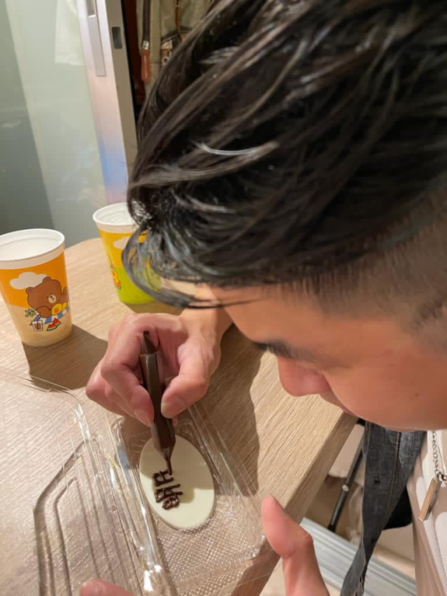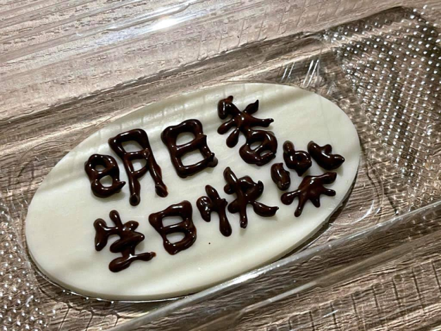 ▼自己親手特製寫著「明日香生日快樂」的蛋糕巧克力板,相當用心