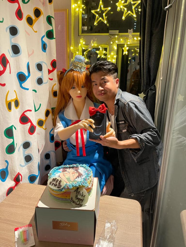 來自香港的狂粉謝天榮,為了慶祝明日香的生日( 12 月 4 日),特地將自己的情趣娃娃老婆 Mochi 打扮成「香姊」,並訂製專屬蛋糕、贈送iPhone12 ProMax 作為禮物,在個人的社群平台上大曬兩人的甜蜜合照!讓網友看了都相當讚嘆,被這真摯的愛給深深感動(?),更有網友直呼:沒比他狂,就不要說明日香是你婆!