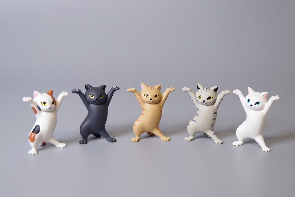 「貓咪置筆架」(ネコのペンおき)轉蛋,將貓咪設計為雙手舉高高的動作,原本的官方用途是可以用來擺放原子筆、鉛筆等,但可愛的扭腰姿勢在日本模型師めーちっさい(@meetissai)一系列的貓咪特技玩法下,讓網友也跟著發揮創意,紛紛分享了各種趣味玩法、成為熱門轉蛋。