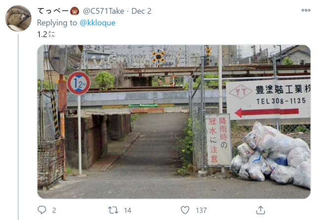 沒錯!導航示意他前進透過這個限高儘 1.7 公尺的隧道! 這名網友也表示如果並非自己的車子高度不超過這個限制,可能連過都不過不去吧 XD,不過這到底過去會通往哪裡呢?也激起日本網友的好奇心 XD。