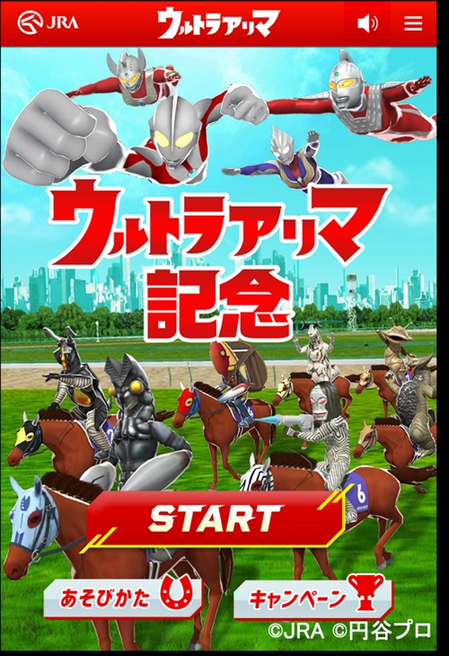 日本中央競馬會JRA將會在12月27日舉辦「第65回 有馬紀念賽」,並且在今天與「超人力霸王」合作推出了有趣的活動「ウルトラアリマ」,活動封面就可以看到我們熟悉的超人力霸王與怪獸們這次不在高樓間戰鬥,而是在賽馬場上競速。