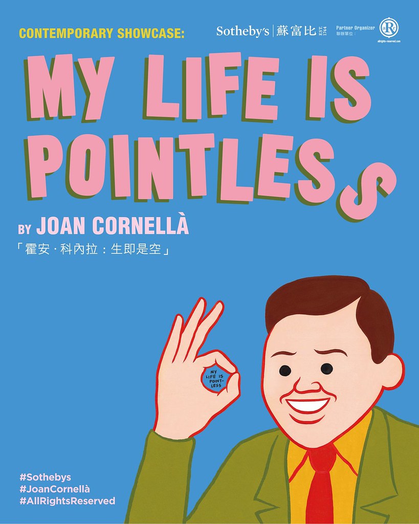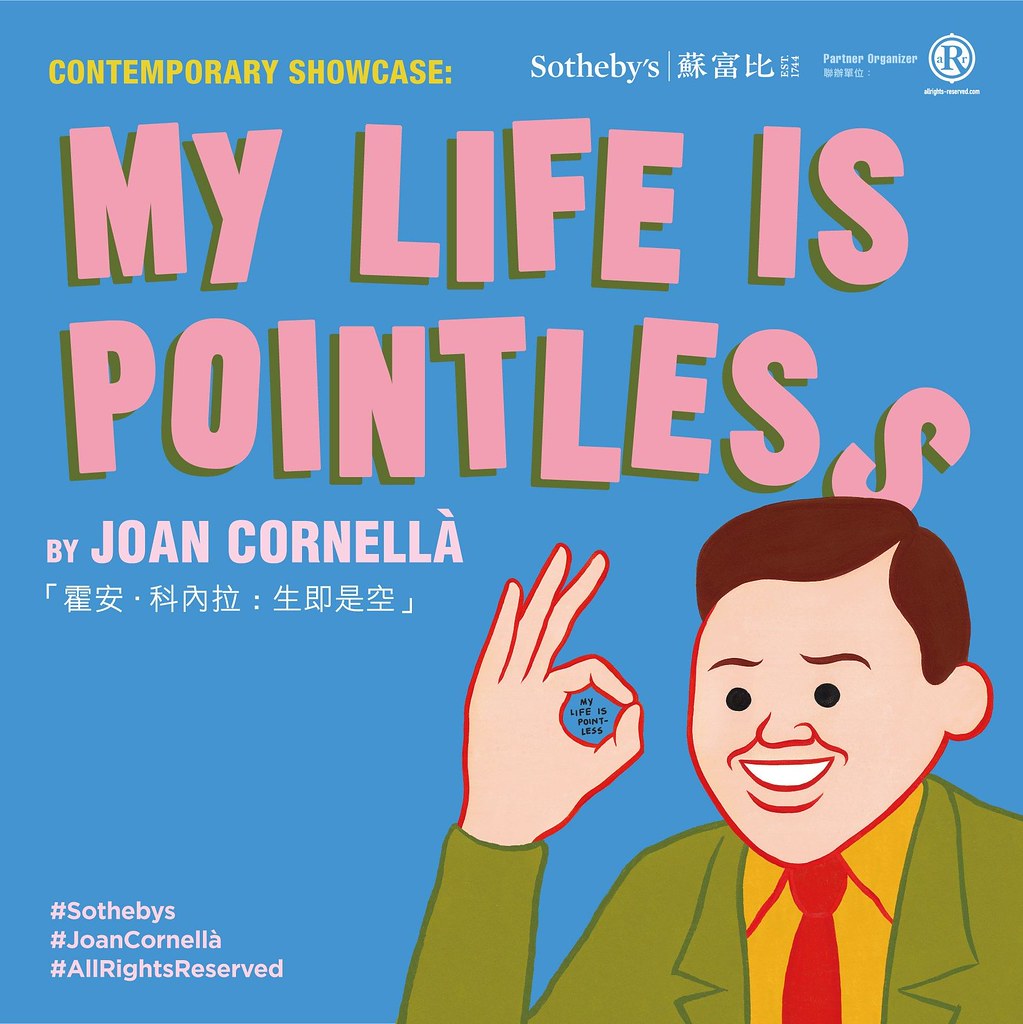 今年 12 月,蘇富比與香港著名創意工作室 AllRightsReserved 聯合呈獻——西班牙藝術家 Joan Cornellà 作品展售會「Contemporary Showcase: My Life Is Pointless by Joan Cornellà」。展售會將在 2020 年 12 月 15 日~ 2021 年 1 月 29 日於香港蘇富比藝術空間舉行,預計帶來Cornellà 48 幅標誌性諷刺時弊的作品,為香港歷來最大型的 Joan Cornellà 展覽!