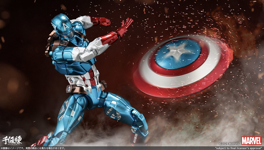 「如果由東尼·史塔克替復仇者聯盟設計裝甲」為原創概念的 Fighting Armor 系列,以漫畫版的造型為基礎,將漫威旗下的超級英雄以「千值練化」的日系洗鍊風格重新詮釋,設計出符合角色形象的強勁裝甲!「Fighting Armor 美國隊長」由機甲設計師大天風光成擔任設計,小松原博之(studioRECKLESS)為原型製作與指導,呈現出精緻而洗鍊的戰甲造型。