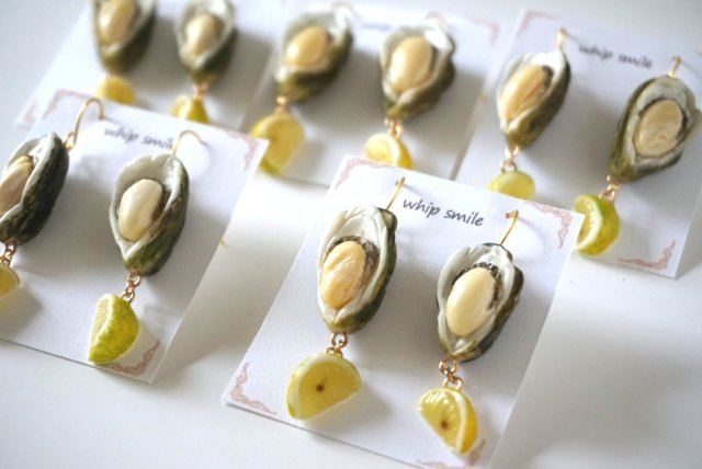 根據whip smile表示,這些食物耳環皆是用樹脂黏土與透明黏土所製作的,而且除了海鮮食物外,就連蔬菜類、水果類,甚至是零食也都有,你可以在他們的官網上找到各式各樣,你所喜歡的食物耳環。