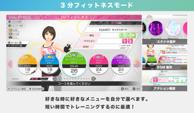 遊戲中加上四位聲優作「私人教練」陪同的設計(佐倉綾音、井上麻里奈、三石琴乃、下野紘),確實增加玩家興趣,每天打出一萬個感謝的正拳—而任天堂在12月10日開始開放下載「體驗版」,在60種基礎訓練中開放「3分鐘減重模式」。